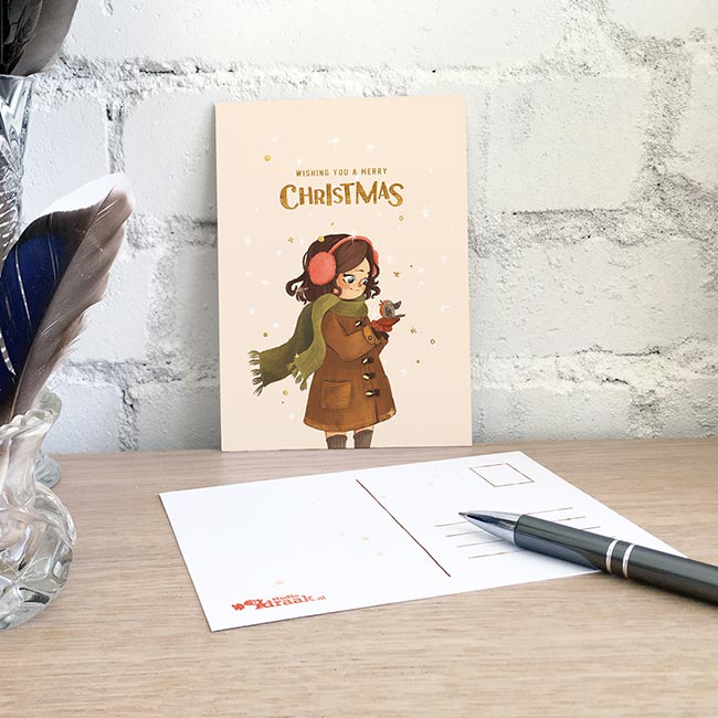 Het formaat is A6 (105×148 mm), de standaard maat voor postkaarten. Goed om te weten is dat de we voor onze kaarten altijd kiezen voor mooie materialen. Omdat het karton enkelzijdig is gestreken, krijg je een mooie matte en wat gladdere voorzijde en een minder gladde achterzijde. En daarmee zijn ze dus perfect te beschrijven!