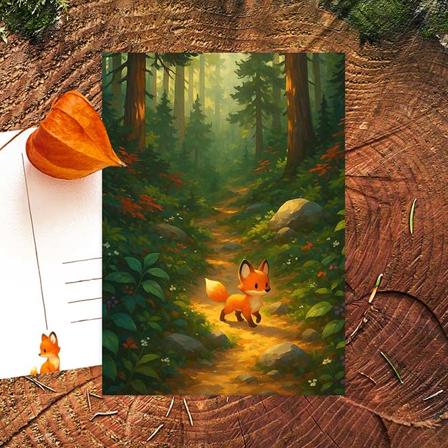 Deze sfeervolle kaart (105 x 148 mm) met het eigenwijze vosje op avontuur in het bos is om verliefd op te worden. Een feest om te versturen, maar ook leuk op de muur van een kinderkamer of stoere loft. We drukken op hoogwaardig sulfaatkarton dat met zorg is uitgekozen. Ook verkrijgbaar als extra voordelige set van vier unieke ontwerpen! We bezuinigen nooit op drukwerk en kiezen altijd voor de beste materialen 🙂