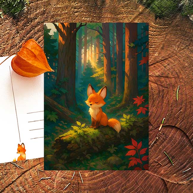 Deze sfeervolle kaart (105 x 148 mm) met het eigenwijze vosje op avontuur in het bos is om verliefd op te worden. Een feest om te versturen, maar ook leuk op de muur van een kinderkamer of stoere loft. We drukken op hoogwaardig sulfaatkarton dat met zorg is uitgekozen. Ook verkrijgbaar als extra voordelige set van vier unieke ontwerpen! We bezuinigen nooit op drukwerk en kiezen altijd voor de beste materialen 🙂
