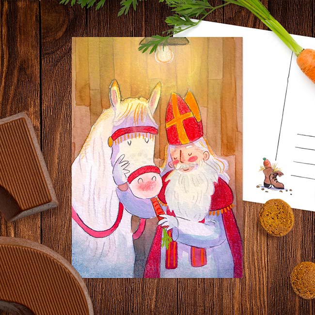 Postkaart ‘Dag Sinterklaasje’ op stal